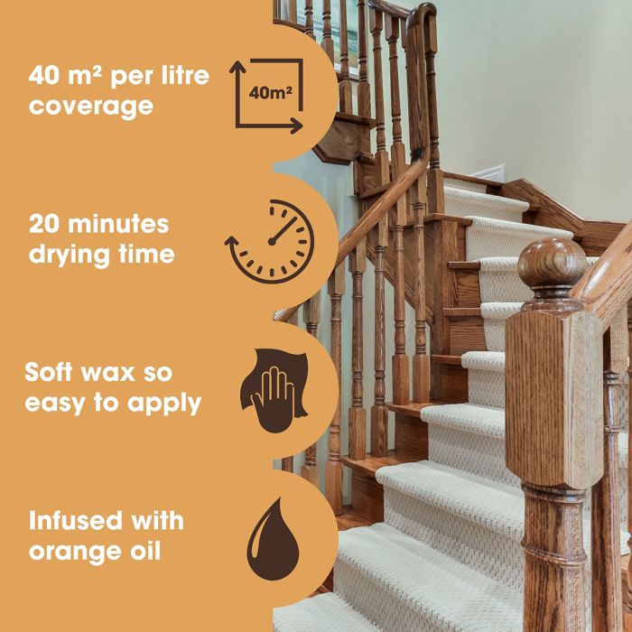 Дървото е органичен материал, който с времето губи своята влага и жизненост. Нашият Wood Conditioner & Polish е създаден, за да върне живота на старата, избледняла и „уморена“ дървесина. Тази уникална формула съчетава силата на подхранващите масла с трислойна защита от пчелен восък, восък от Карнауба и свежо портокалово масло.